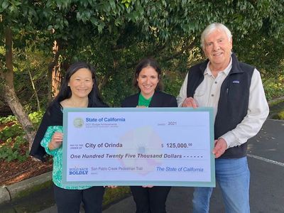 Assemblymember Rebecca Bauer-Kahan invited Friends of Orinda Creeks president Bob Stoops, Mayor Amy Worth, Vice Mayor Dennis Fay and Chamber of Commerce VP Juliet Don plus many others to the banks of San Pablo Creek to present $125,000 in State funds for the downtown creek on Nov 5, 2021. FOC initially requested the funds for restoration and trail design and a check will be issued to The City of Orinda. Click here to view the related press release issued by Assemblymember Bauer-Kahan.